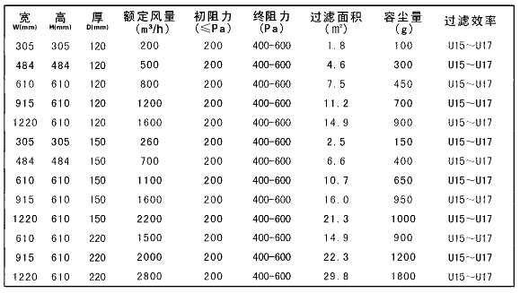 板式高效過濾器規格尺寸參數