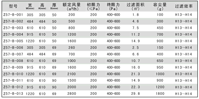 高效過(guò)濾器規(guī)格尺寸及廠家: