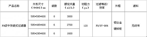 F9級袋式中效過濾器特點: