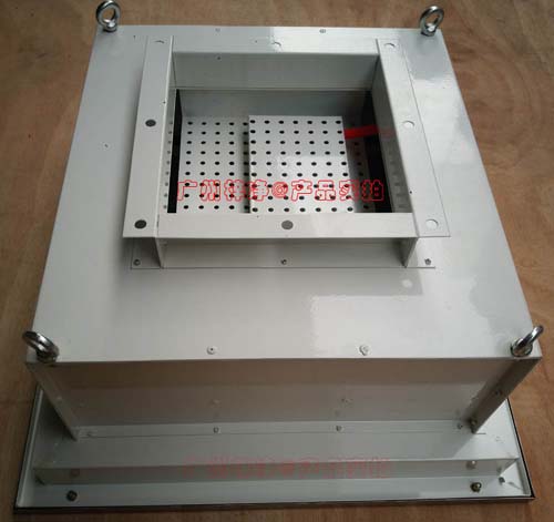 A、高效送風口靜壓箱體,材質有冷軋鋼板(A3板)與不銹鋼板。箱體是用作吊在天花上與四周庫板相結合密封,也是高效送風口四件套主體。