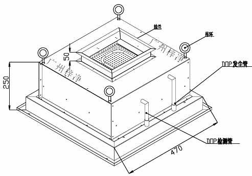 DOP液槽式高效送風口箱體尺寸:520×520×250;液槽式高效過濾器尺寸:450×450×69 額定風量500m。