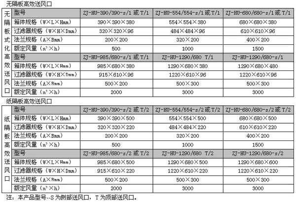 高效送風(fēng)口常用規(guī)格尺寸及型號(hào)參數(shù):