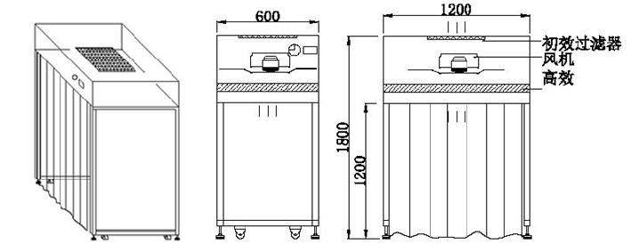 產品結構由不銹鋼板或噴塑鋼板組成,電腦輕觸點控制,風機為無級調速,風量任意調節,配置帶紫外線滅菌燈,規格尺寸可根據客戶要求定做。