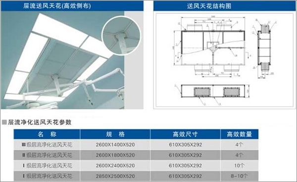 層流天花結構的合理性直接影響到手術室的送風效果,凈化級別、垂直送風模式;